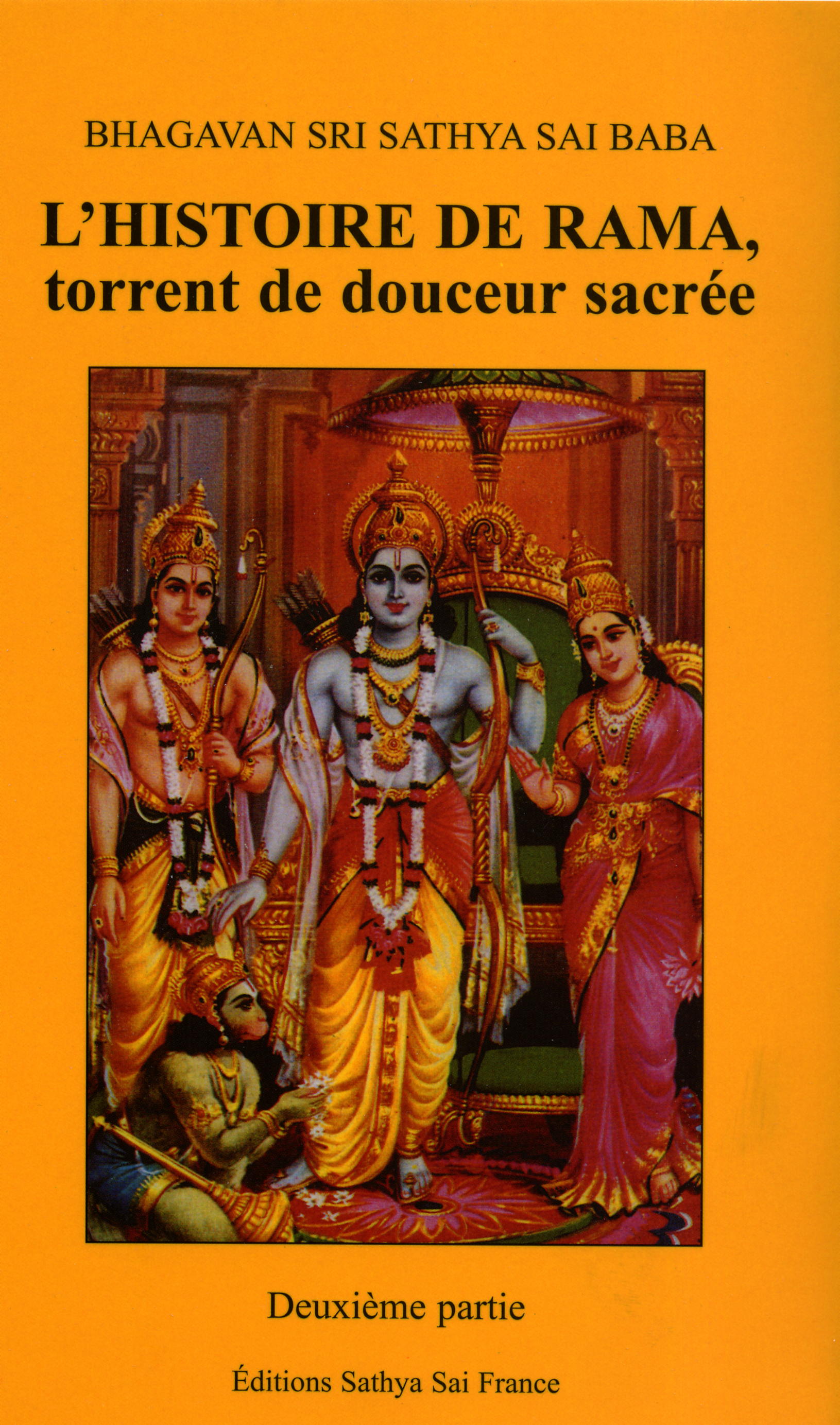 L'histoire de Rama,torrent de douceur sacréetome 2" L'enseignement fondamental du Ramayana est ceci : "L'âme, le mental, la connaissance, le désespoire, le discernement, le courage, l'illusion, les passions, l'ignorance, l'équilibre, apparaissent chacun sous une forme différente afin d'apprendre comment et par quels moyens ils peuvent être acquis ou maîtrisés." Tout cela est accompli par le Soi venu sous la Forme et avec le Nom de Rama, à travers Ses actes, Sa conduite, Son instruction et Son exemple. Ainsi le Ramayana n'a pas de fin. Il continuera de prendre place dans le coeur de l'homme tant que dans la vie de chacun se déroulera une lutte pour la réalisation du Soi, que certains atteindront la Sagesse (Anubhavajnana) et que l'équilibre (sattva) l'emportera finalement."Sathya SAI BABA |